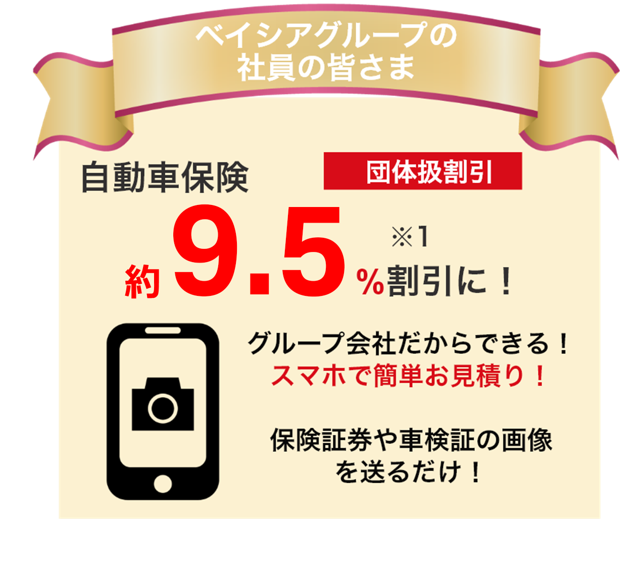 ベイシアグループ団体扱割引が適用され、一般契約よりも割安な保険料でご契約いただけます。